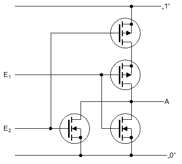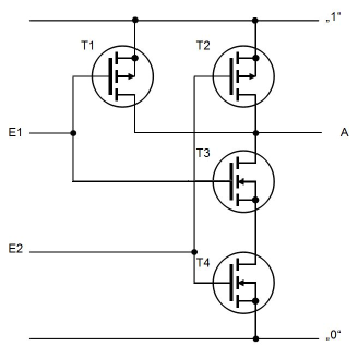 Das Ausgangssignal A ist also genau dann gleich 1, wenn sowohl E1 als auch E2 gleich 1 sind. |