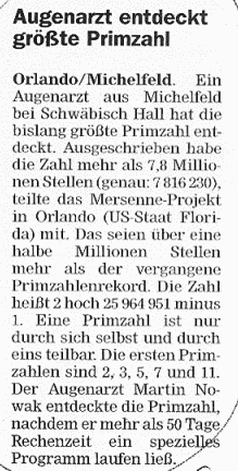 - Hat die Entdeckung dieser Primzahl einen praktischen Nutzen für die Menschheit?